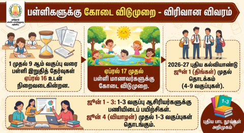 பள்ளிகளுக்கு கோடை விடுமுறை – விரிவான விவரம்