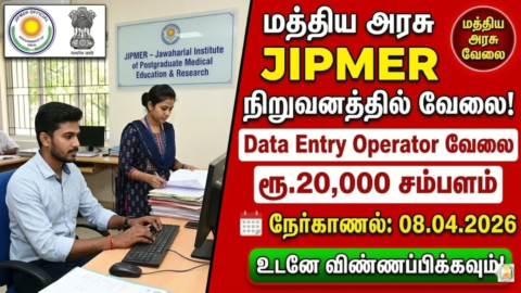 மத்திய அரசு ஜிப்மர் நிறுவனத்தில் Data Entry Operator வேலை – ரூ.20,000 சம்பளம் || உடனே விண்ணப்பிக்கவும்! JIPMER Data Entry Operator Recruitment 2026