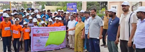 மயிலாடுதுறையில் 100% வாக்குப்பதிவை வலியுறுத்தி பள்ளி மாணவர்கள் பங்கேற்ற விழிப்புணர்வு மாரத்தான்!