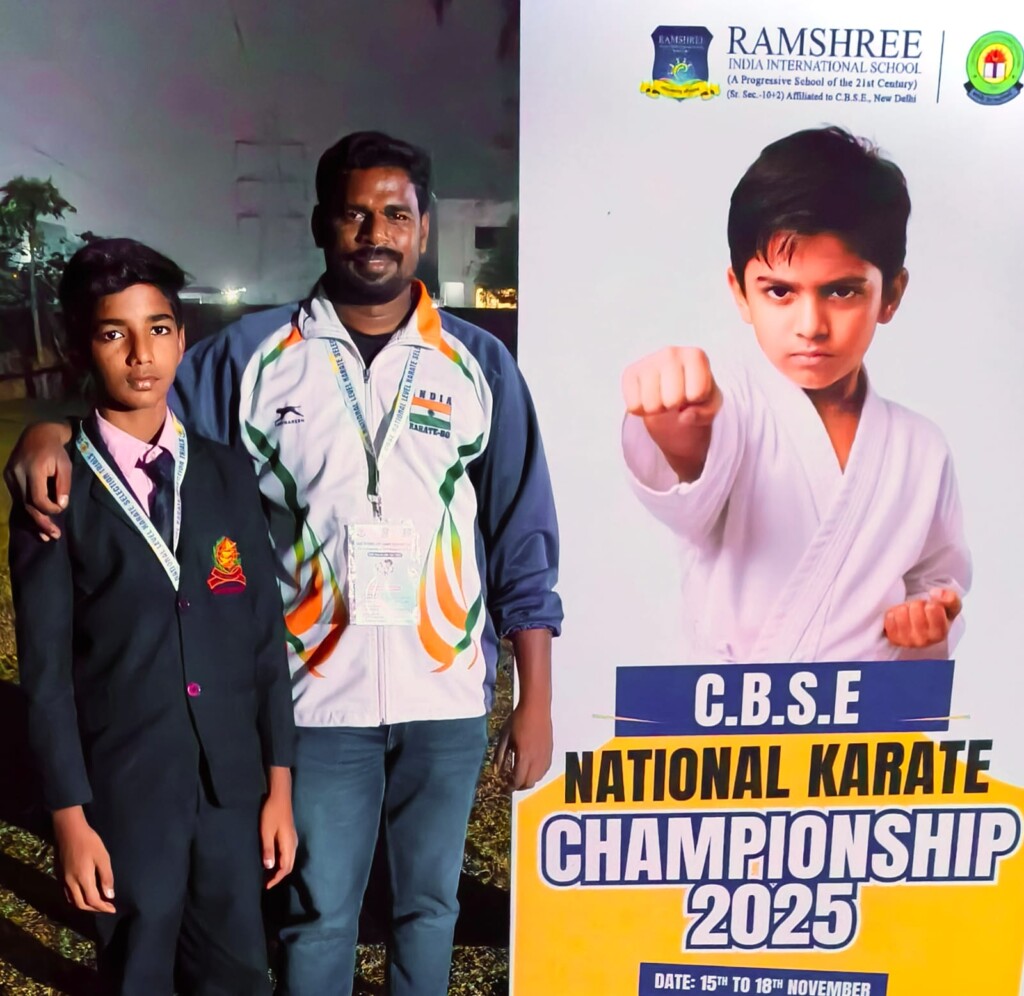 அகில இந்திய அளவில் உள்ள சி பி எஸ் இ பள்ளிகளுக்கு இடையிலான தேசிய கராத்தே போட்டி, மத்திய பிரதேச மாநிலம் குவாலியரில் 2025 நவம்பர் 15 முதல் 18 வரை நடைபெற்றது.இந்தியாவின் அனைத்து மாநிலங்களிலிருந்தும் மொத்தம் 220 பள்ளிகளைச் சார்ந்த சுமார் 600 மாணவர்கள் கலந்து கொண்டனர்.
