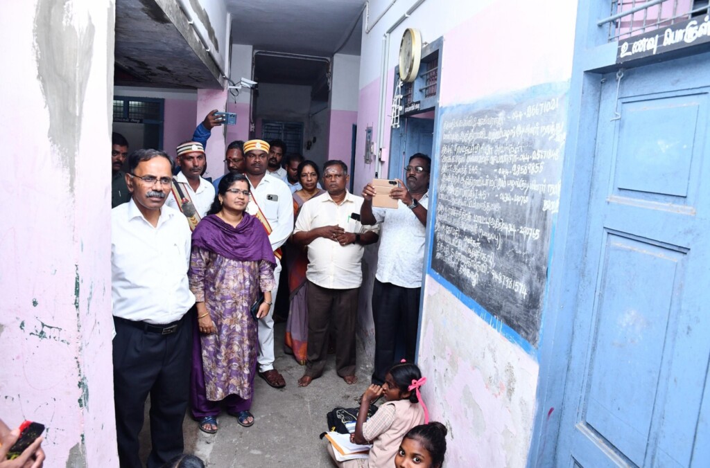 மயிலாடுதுறை மாவட்டம் நலத்துறையின் அரசு மாணவியர் விடுதியில் மாண்புமிகு தமிழ்நாடு முதலமைச்சர் அவர்களின் “உங்களை தேடி உங்கள் ஊரில்” திட்டத்தின் கீழ் மாவட்ட ஆட்சியர் ஏ.பி.மகாபாரதி இ.ஆசீர்காழியில் ஆதிதிராவிடர்.ப அவர்கள் ஆய்வு மேற்கொண்டு, மாணவிகளிடம் கலந்துரையாடி, உணவு உள்ளிட்ட அடிப்படை வசதிகள் குறித்து கேட்டறிந்தார்கள். உடன் மாவட்ட வருவாய் அலுவலர் திருமதி. உமாமகேஷ்வரி அவர்கள், தனித்துணை ஆட்சியர் (சமூக பாதுகாப்பு திட்டம்) கீதா அவர்கள், சீர்காழி வருவாய் கோட்டாட்சியர் சுரேஷ் அவர்கள், மாவட்ட பிற்படுத்தப்பட்டோர் நலத்துறை அலுவலர் ரவி அவர்கள், சீர்காழி வட்டாட்சியர் அருள்ஜோதி உள்ளனர்.