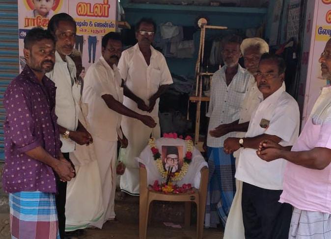 மயிலாடுதுறை மாவட்டம் எஸ். புதூர் கடை வீதியில், தமிழர் முன்னேற்ற பேரவை சார்பில் கண்ணியமிகு காயிதே மில்லத் அவர்களின் திருவுருவப் படத்திற்கு மலர் தூவி மரியாதை செலுத்தப்பட்டது.