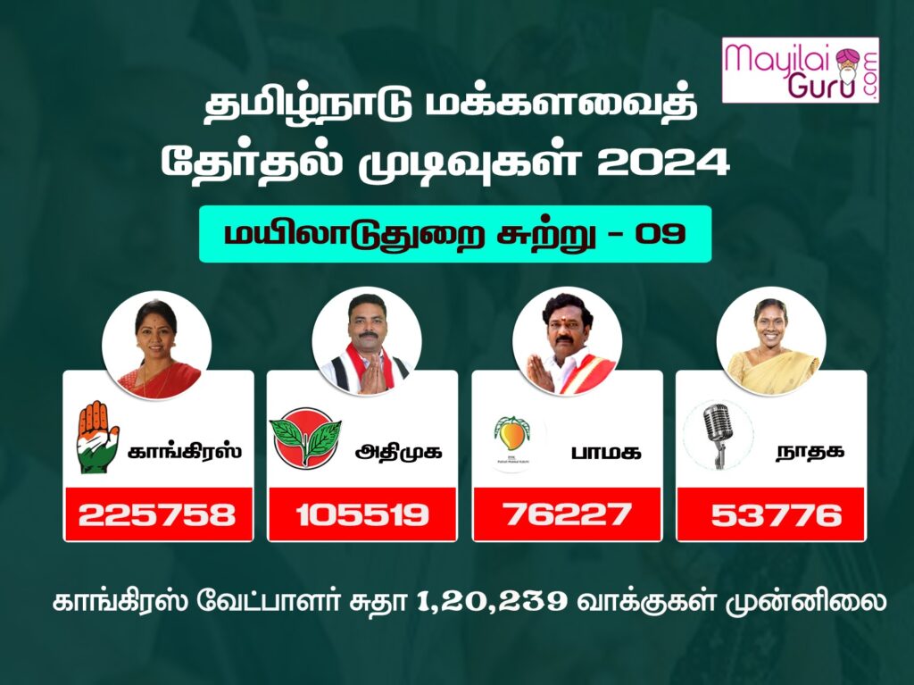 செய்திகள் மயிலாடுதுறை மக்களவைத் தொகுதி 9 வது சுற்று முடிவுமயிலாடுதுறை மக்களவைத் தொகுதி 9 வது சுற்று முடிவு By AdminJune 4, 2024Less 1 min read233 Views ShareTweetPinShareSend Previous Postமயிலாடுதுறை நாடாளுமன்ற தொகுதி ஏழாவது சுற்று முடிவு. Next Postமயிலாடுதுறை மக்களவைத் தொகுதி பத்தாவது சுற்று முடிவு You May Also Like மயிலாடுதுறை மாவட்ட ஆட்சியர் .ஏ.பி.மகாபாரதி இ.ஆ.ப அவர்கள் பயனாளிகளுக்கு இலவச தையல் இயந்திரங்களை வழங்கினார்கள் February 25, 2025 அரசு பள்ளிகளின் நூற்றாண்டு திருவிழாவை தொடங்கி வைத்தார் மாவட்ட ஆட்சியர் ஏ.பி.மகாபாரதி January 25, 2025 மயிலாடுதுறை மாவட்டத்தில் மாநில அளவிலான குத்துச்சண்டை போட்டி January 27, 2025 மயிலாடுதுறை மாவட்டம் குத்தாலம் நண்டலாறு நீரொழிங்கியில் மாவட்ட ஆட்சியர் ஆய்வு December 16, 2024