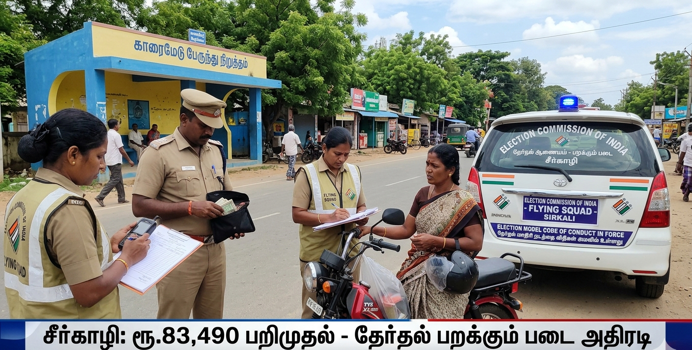 வாகன சோதனையில் ரூ.83,490 பறிமுதல்: சீர்காழி தேர்தல் பறக்கும் படை அதிரடி!