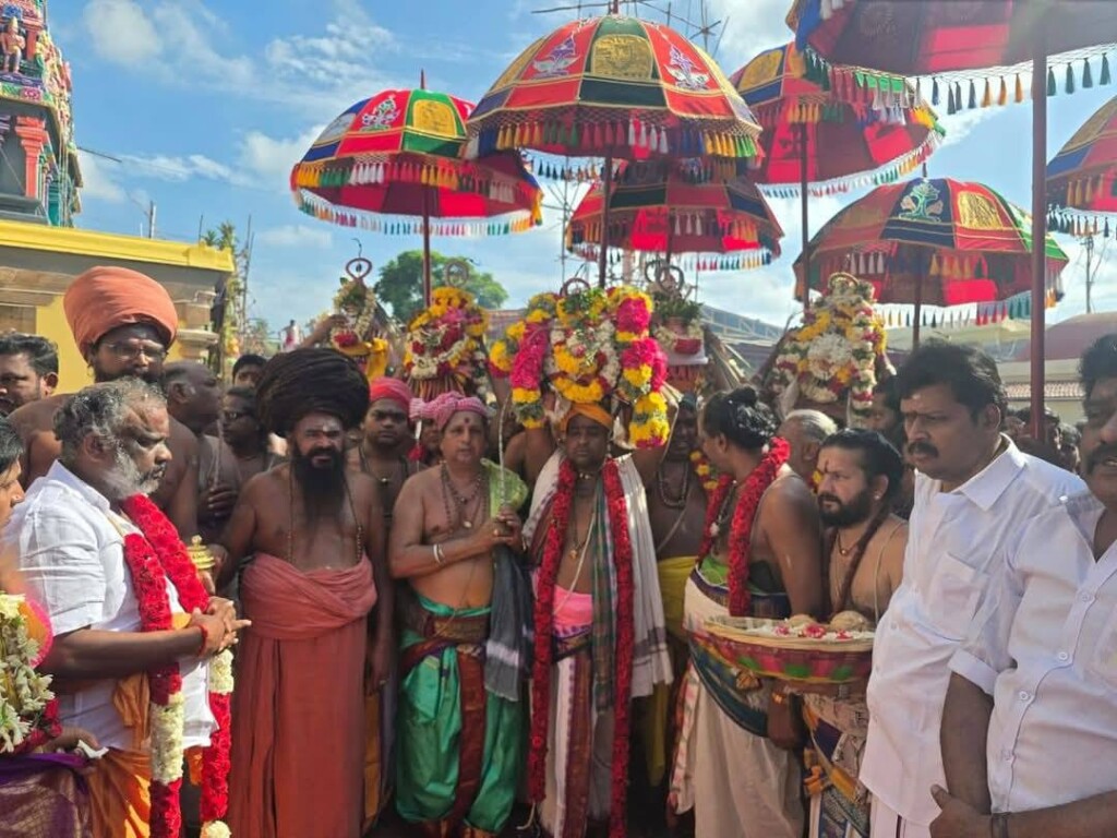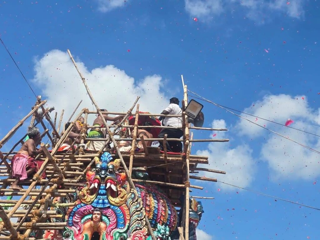 பெரு விமர்சனம் நடைபெற்றது அதனை தொடர்ந்து ஹெலிகாப்டர் மூலம் கோபுர கலசங்கள் மீதும் பக்தர்கள் மீதும் மலர் தூவப்பட்டது ட்ரோன் மூலமும் புனித நீரானது பக்தர்களுக்கு தெளிக்கப்பட்டது பக்தர்கள் மீது ஹெலிகாப்டர் மூலம் பூத்து பார்த்த பக்தர்கள் பக்தி பரவசம் அடைந்தனர் மேலும் வந்து கும்பாபிஷேகத்தில் தர்மபுர ஆதின மடாதிபதி இந்து சமயத்து அரங்க அதிகாரிகள் உள்ளிட்ட சாமி தரிசனம் செய்தனர் கும்பாபிஷேகத்தை முன்னிட்டு மயலாதுறை