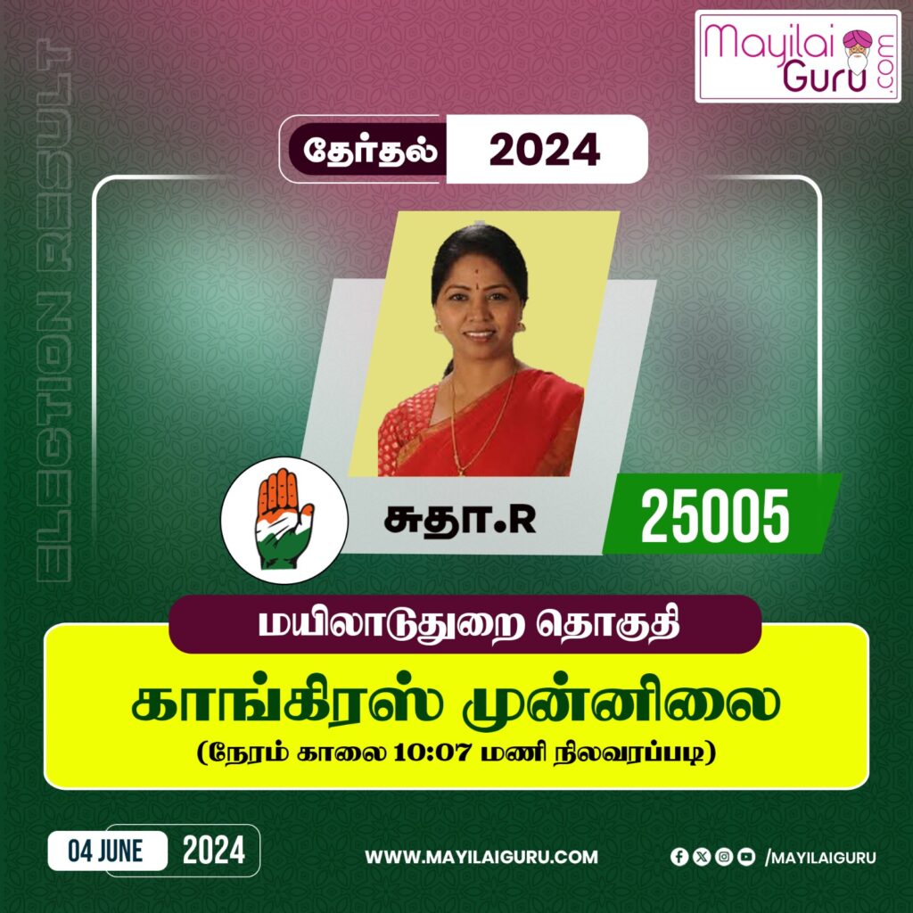 செய்திகள் மயிலாடுதுறையில் யார்? எத்தனை வாக்குகள்? பெற்றுள்ளனர்..மயிலாடுதுறையில் யார்? எத்தனை வாக்குகள்? பெற்றுள்ளனர்.. By AdminJune 4, 2024Less 1 min read173 Views ShareTweetPinShareSend Previous Post2024 நாடாளுமன்ற தேர்தல் : தமிழ்நாட்டில் தி.மு.க. முன்னிலை Next Postஇரண்டாம் சுற்று காங்கிரஸ் வேட்பாளர் சுதா முன்னிலை You May Also Like 3 மாவாட்டங்களுக்கு நாளை ரெட் அலர்ட் #2 November 25, 2024 3-ம் கட்ட தேர்தலுக்கான வேட்புமனு தாக்கல் இன்று தொடக்கம் April 12, 2024 Entrepreneurship Development and Innovation Institute One-Day Workshop on “ChatGPT for Entrepreneurs” March 6, 2025 இன்றைய ராசி பலன்கள் – டிசம்பர் 9 – 2024 திங்கட்கிழமை December 9, 2024